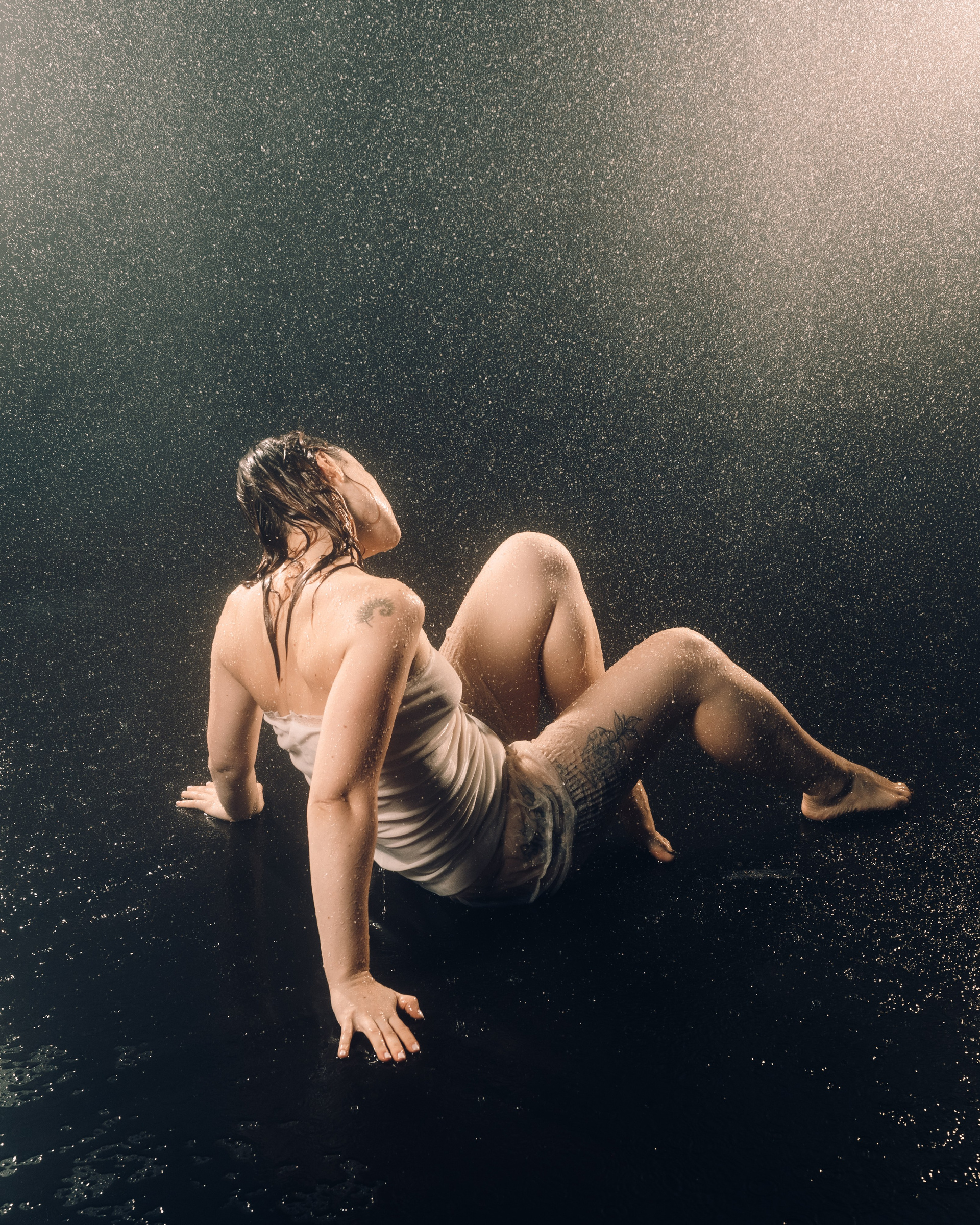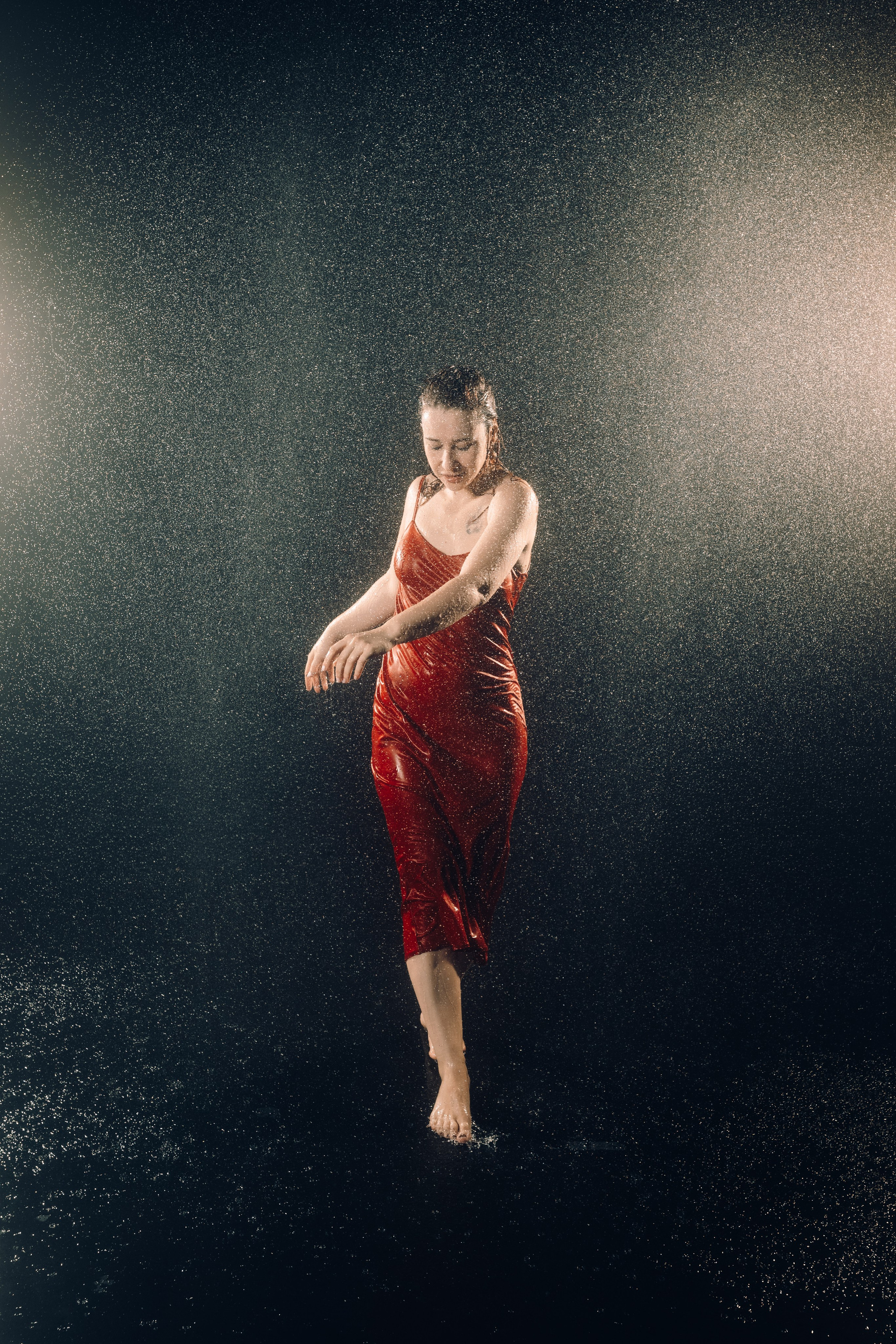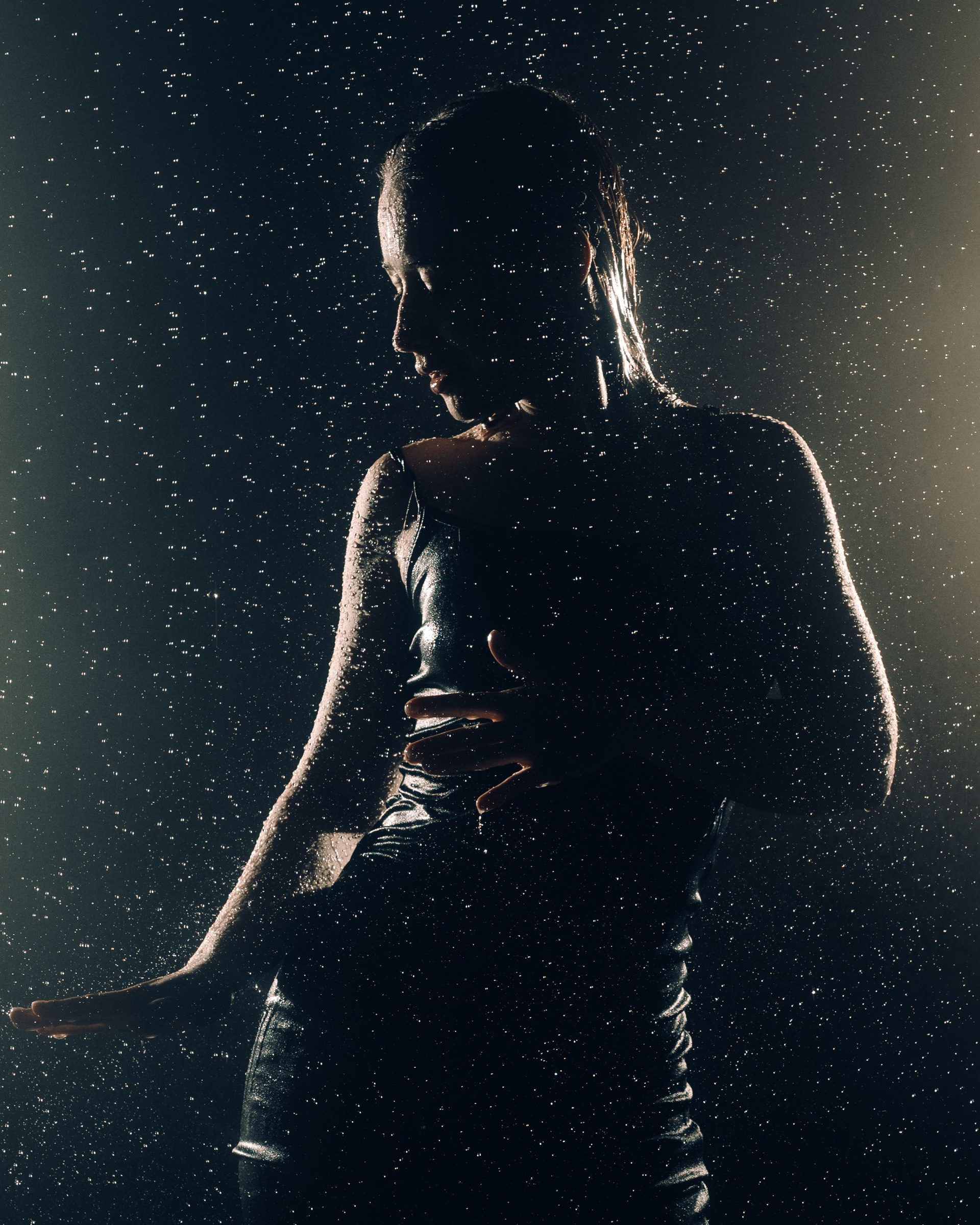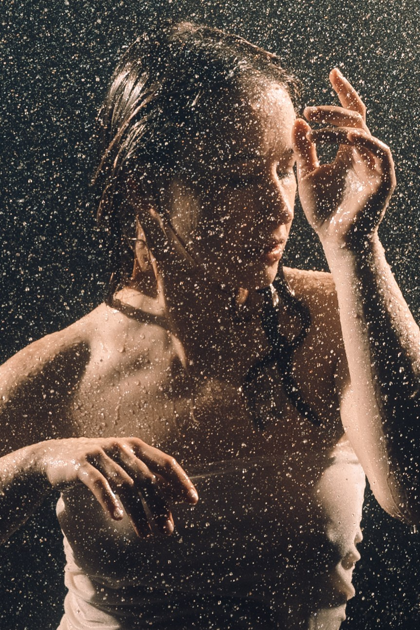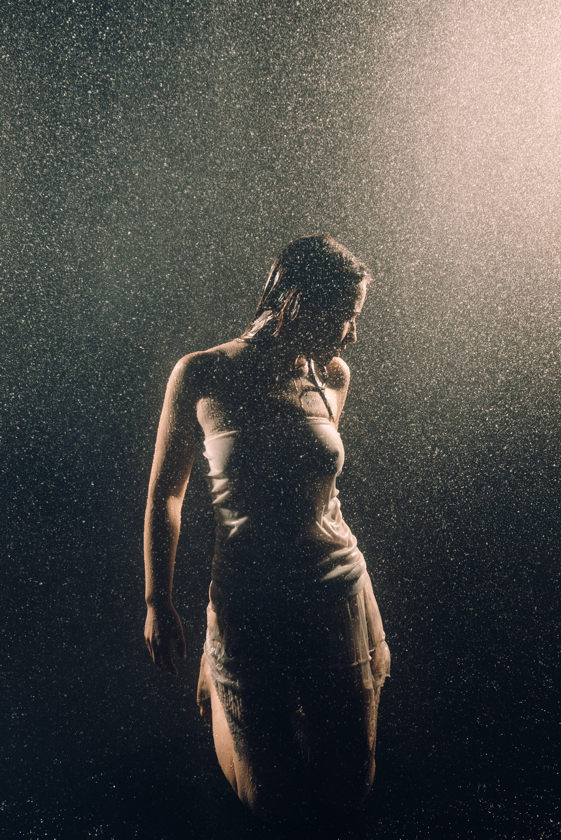 Женская съёмка в студии с дождём