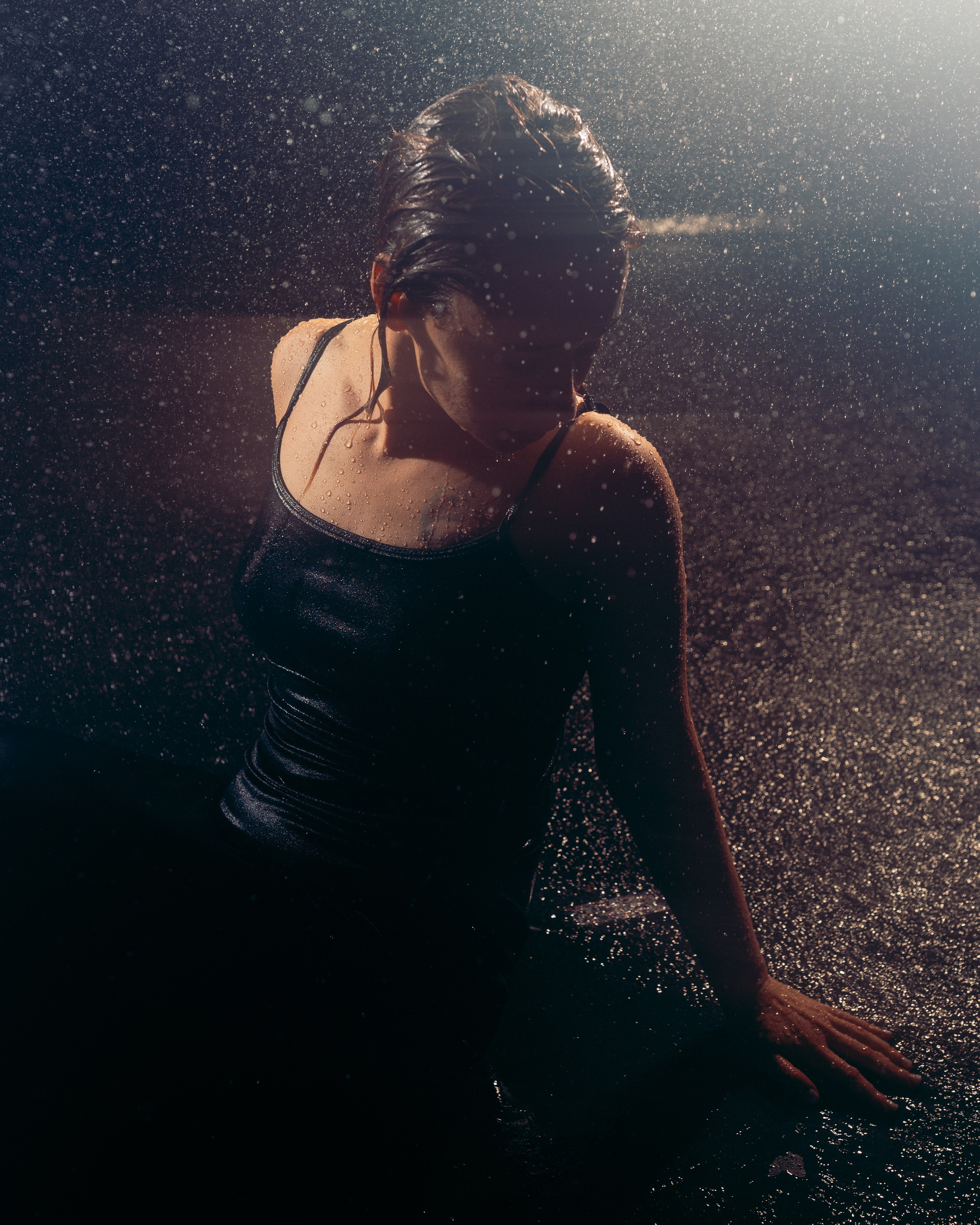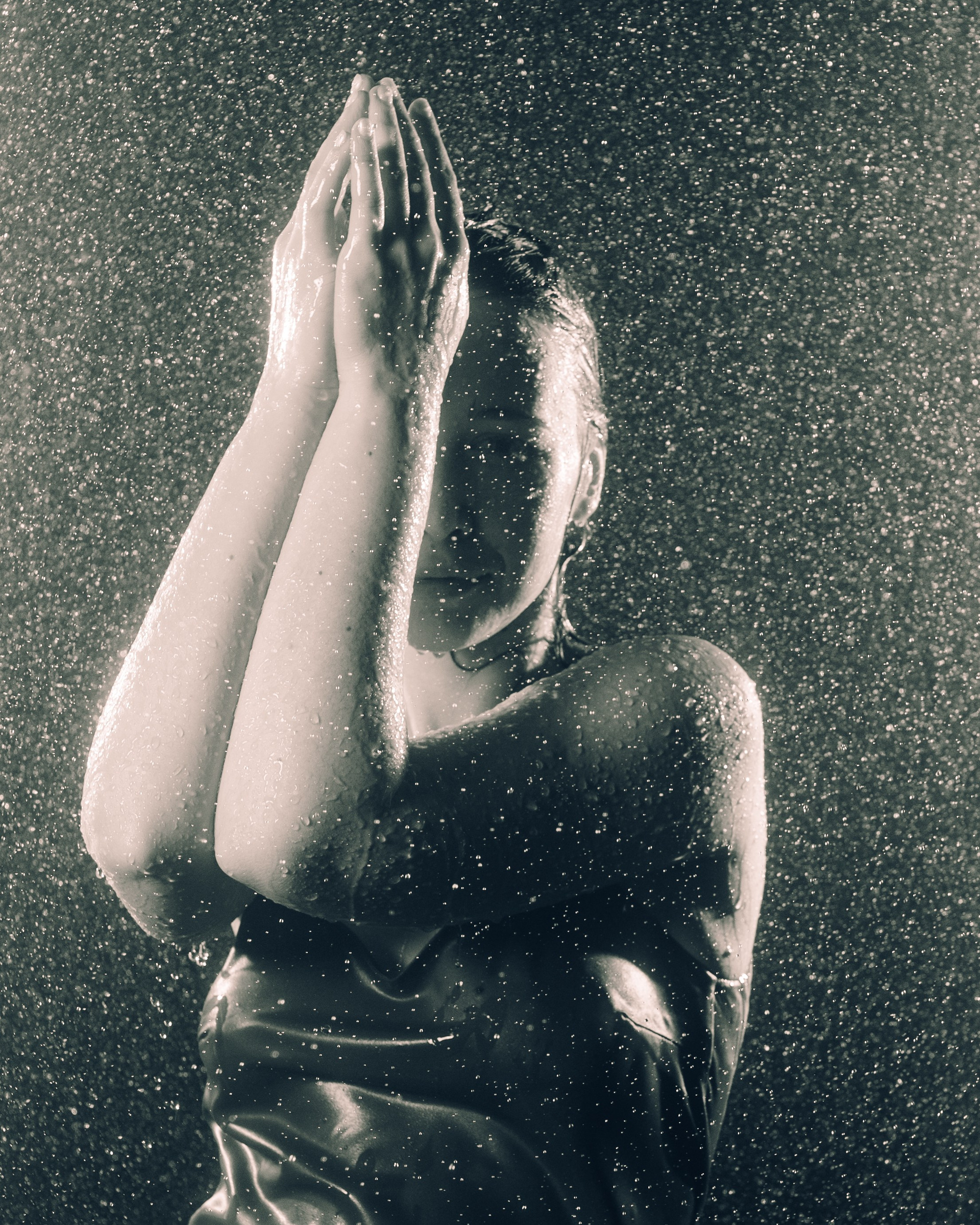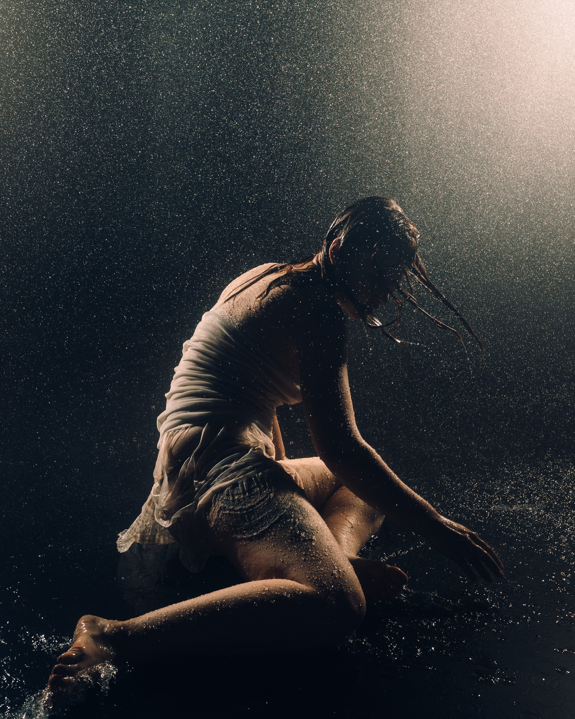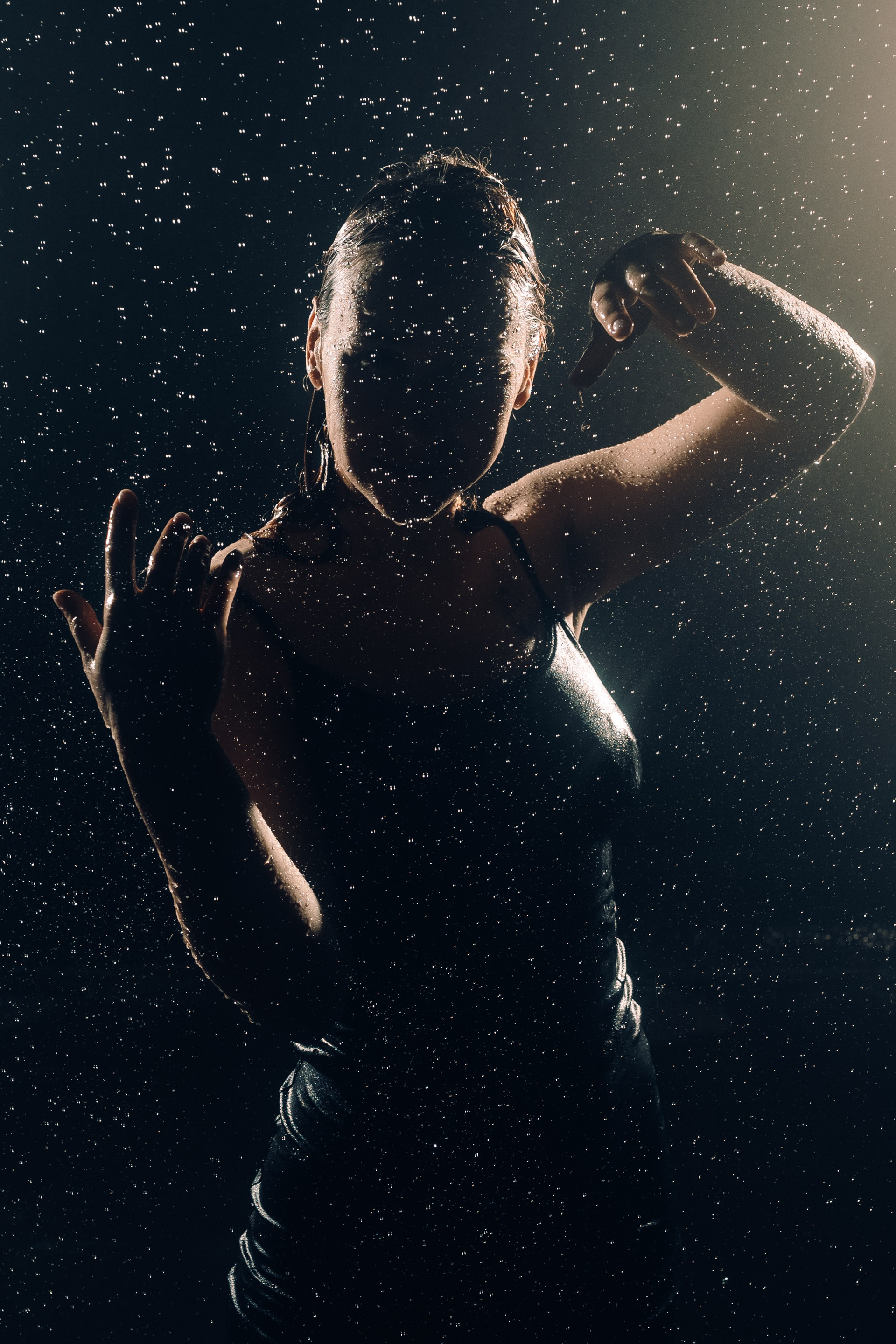 Женская съёмка в студии с дождём
