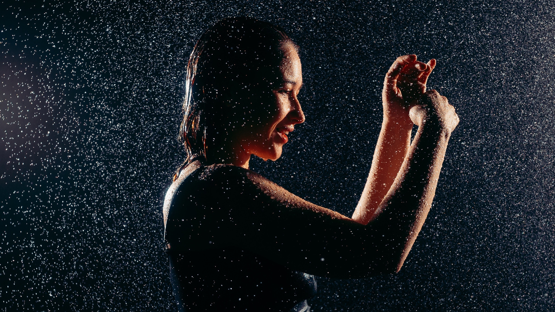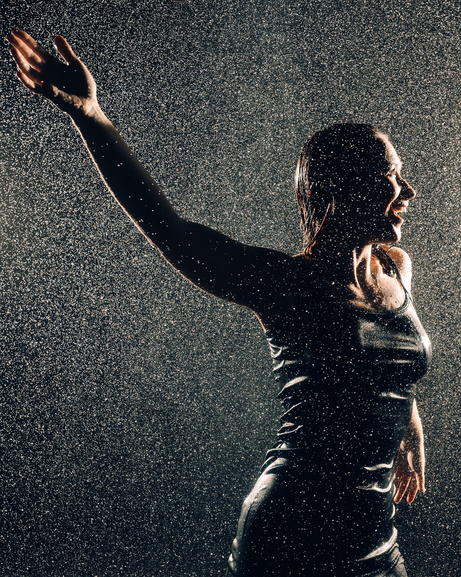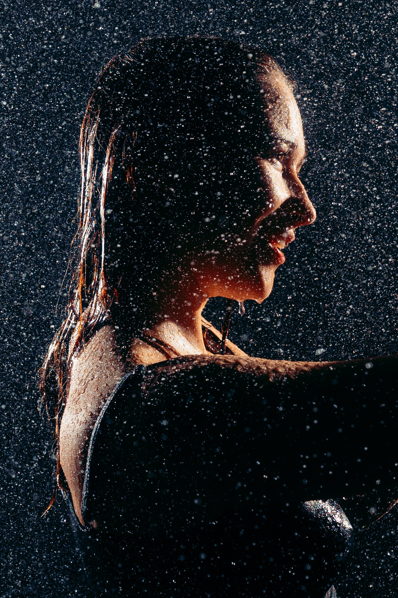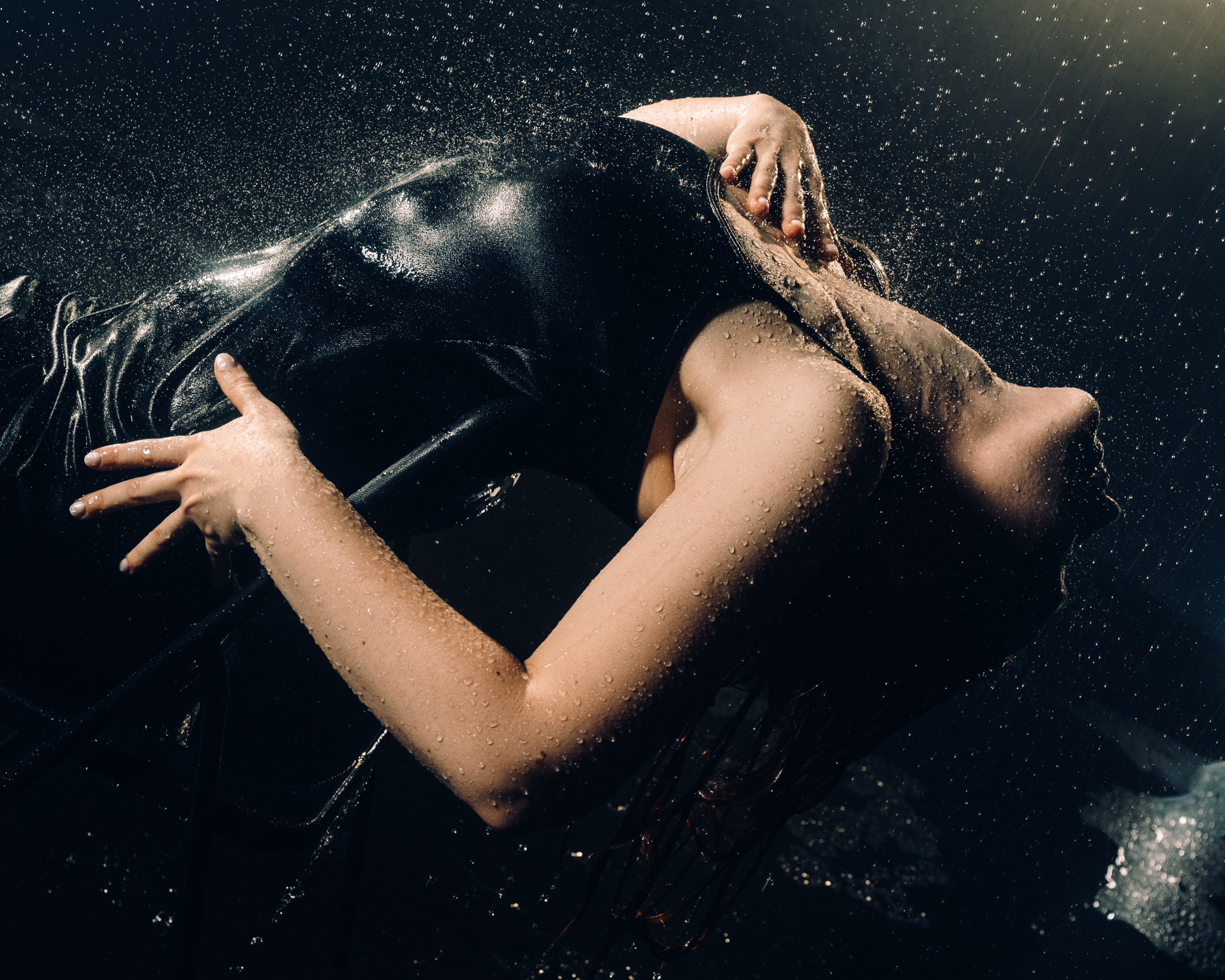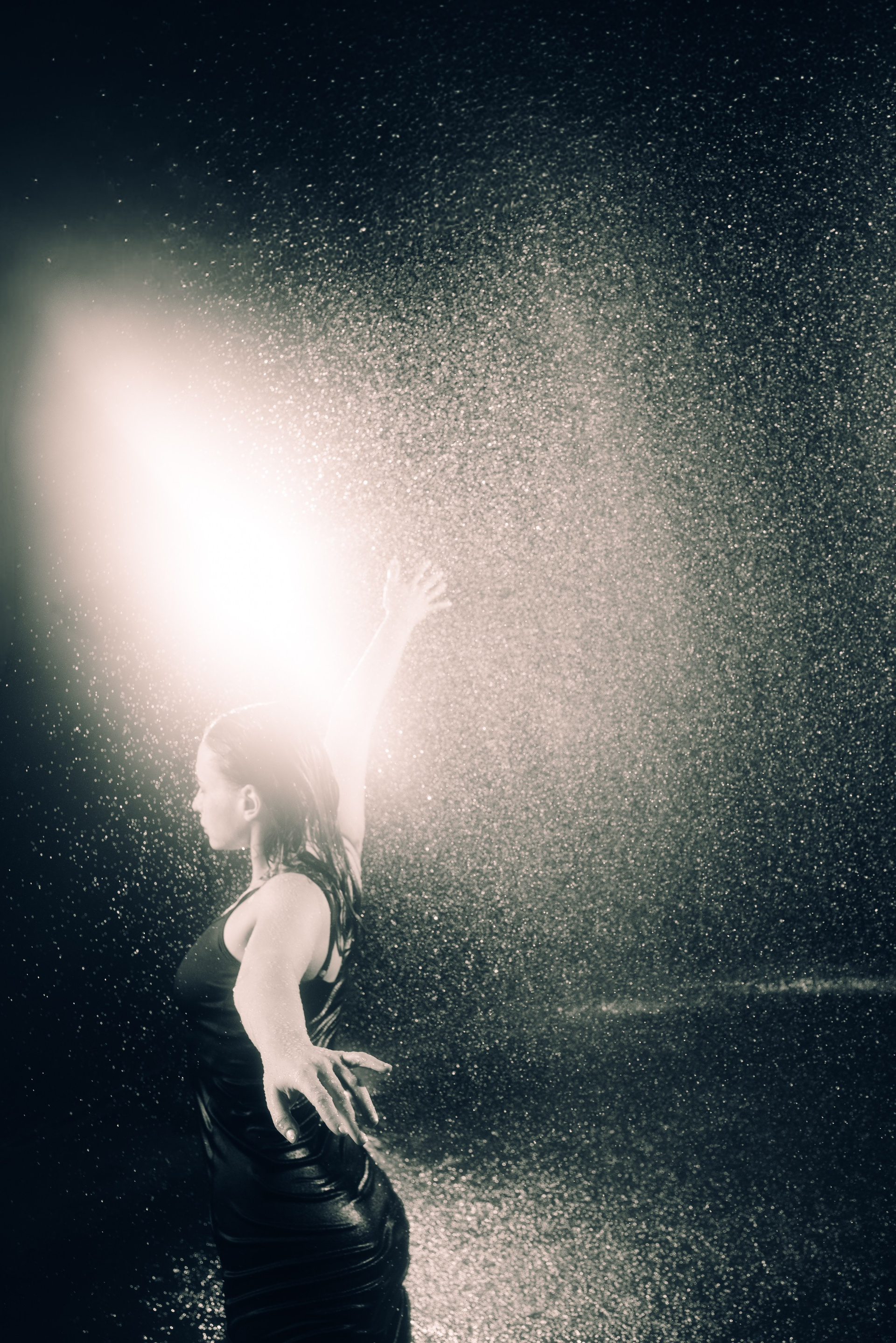 Женская съёмка в студии с дождём