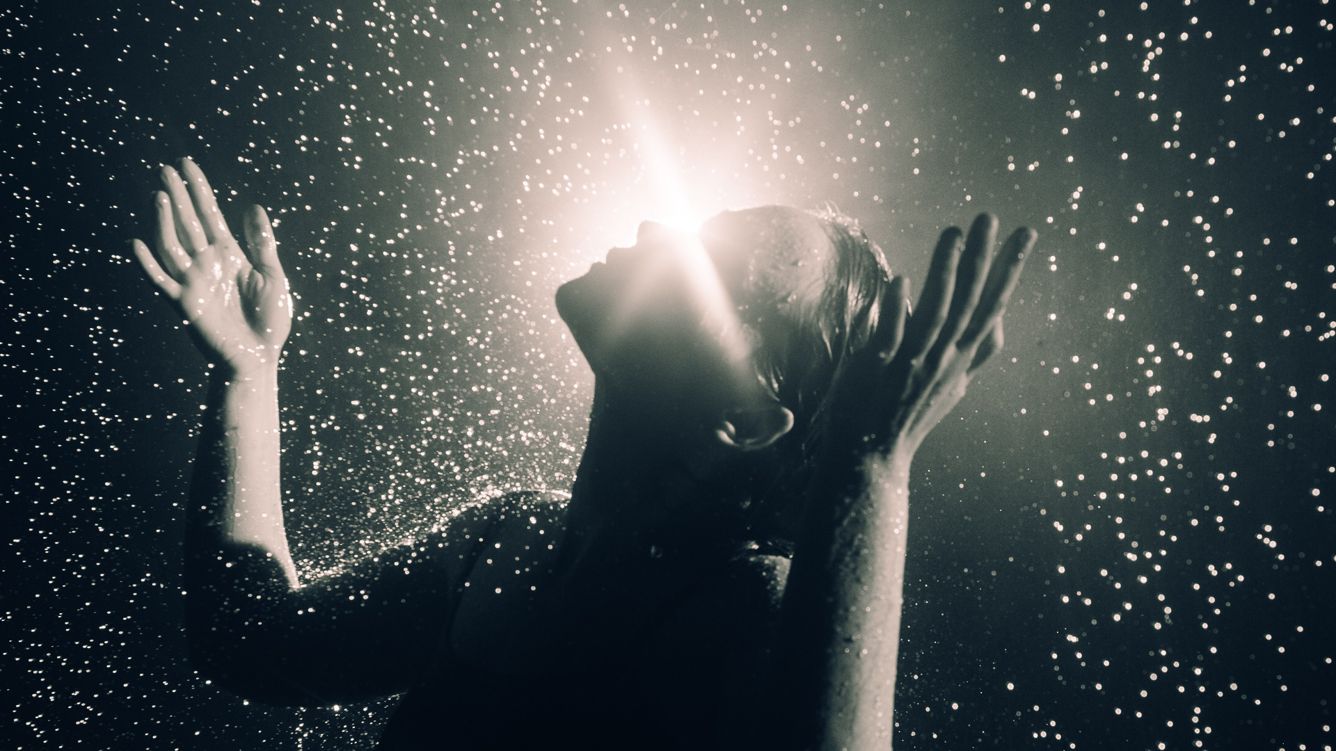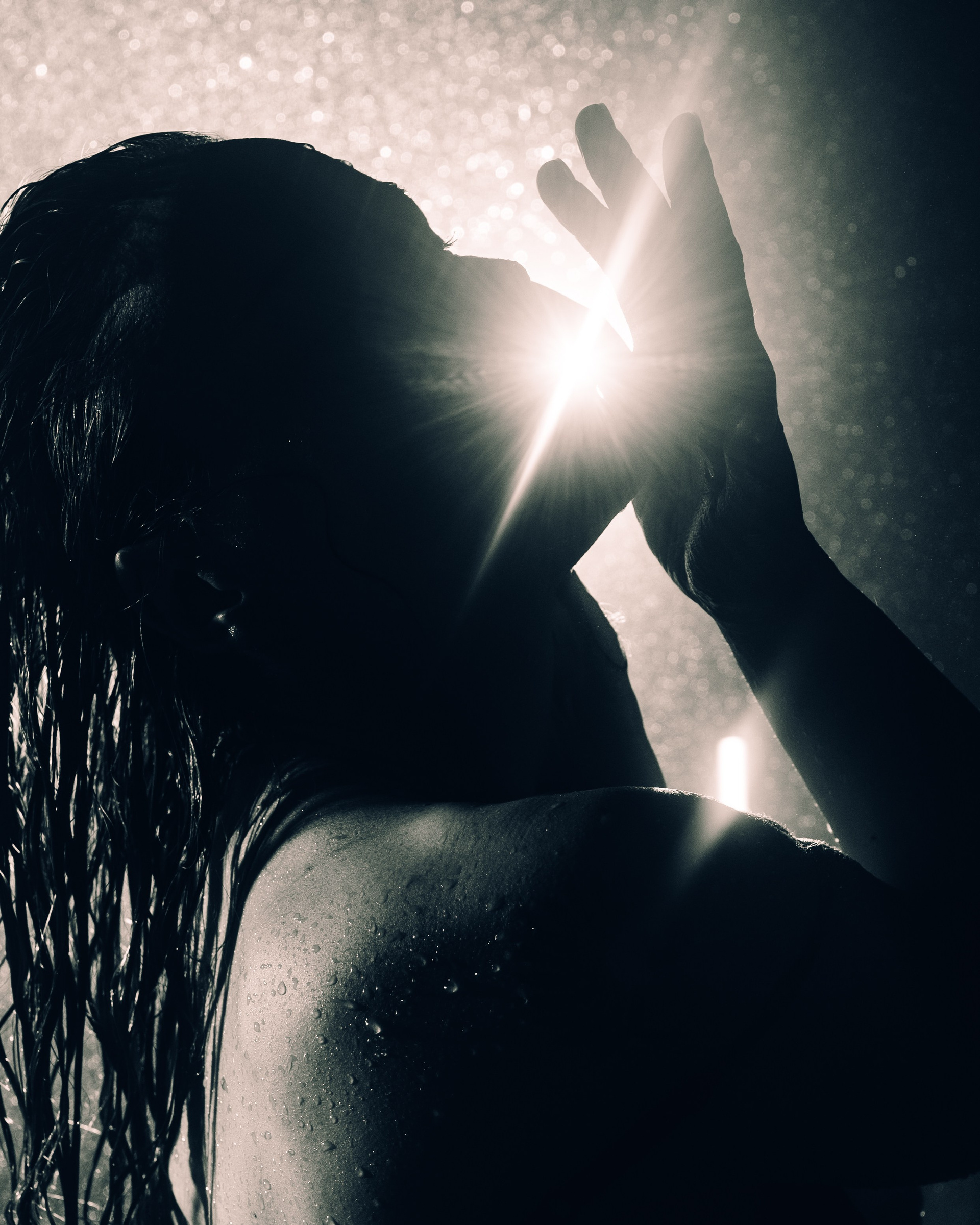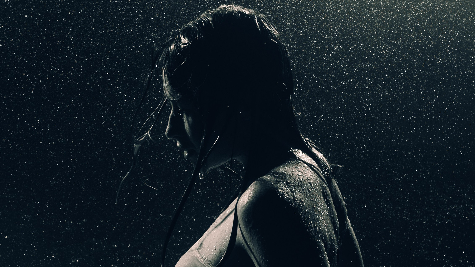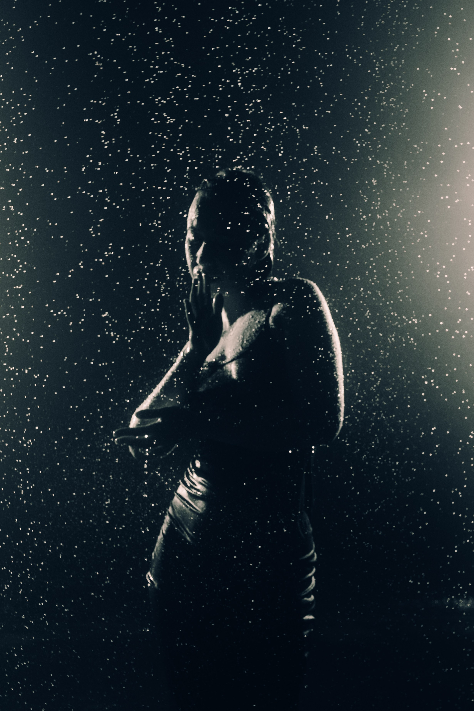 Женская съёмка в студии с дождём