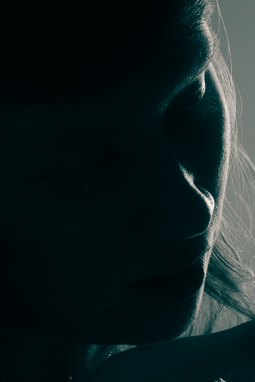 Женская психологическая съёмка в лесу